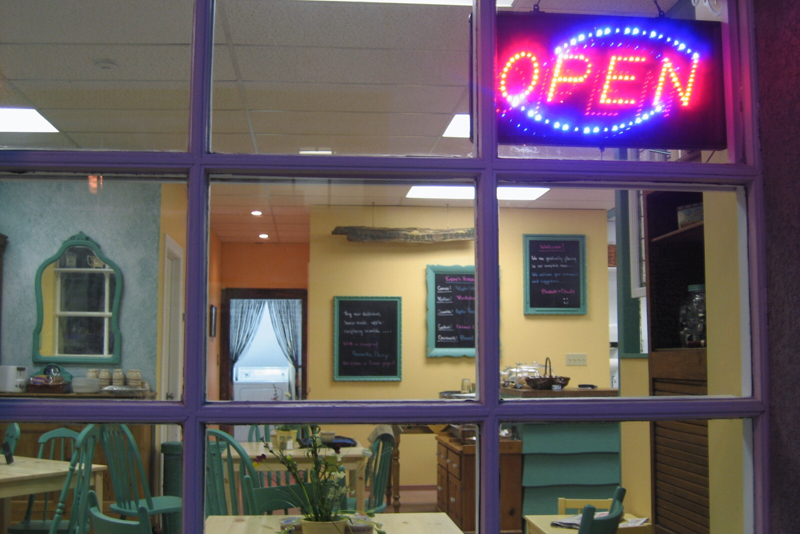 Fine Thymes restaurant window. Bracebridge, Ontario